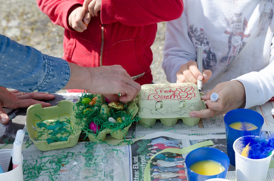 Am letzten Mittwoch den 12. April 2017 war es soweit. Die erste Crossiety Ostereiersuche konnte dank dem traumhaften Frühlingswetter im wunderschönen Park in Thalwil durchgeführt werden. Über 60 Personen mit Kindern aus Thalwil und der Region Horgen & Zimmerberg sind unserem Aufruf auf unserer Online-Plattform, Facebook-Seite und unserem Blog gefolgt und haben zwischen 09:00 und 16:00 sämtliche Wiesen, Büsche und Höhlen nach leckeren Ostersäckchen abgesucht. Sobald die Kinder ein Säckchen gefunden hatten, ging es am Basteltisch weiter. Alle Kinder erhielten dort ein Osternestchen, welches anschliessend mit bunter Farbe bemalt und mit viel Glitzer, Federn und natürlich grünem Osterstroh geschmückt werden konnte.